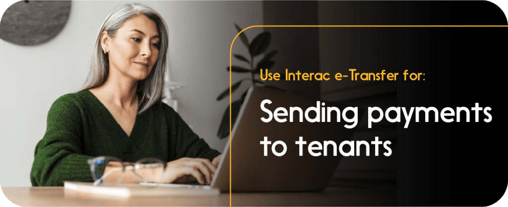 You may have occasional payouts to tenants as well. For example, rent deposit interest and reimbursements for costs that tenants have incurred on your behalf (e.g. appliance repairs). Tenants will get their money right away if you use Interac e-Transfer rather than a cheque. This may also help you keep on top of cash flow — you won’t have to note the balance of outgoing cheques and keep the amount in your account until they clear.