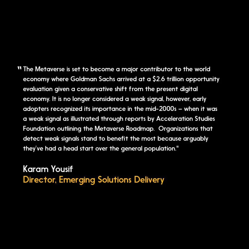 For far too long, Canada has been a nation of bystanders, looking for cues from other jurisdictions, teetering on the precipice of change. However, we also have a culture of openness and acceptance, which can yield significant opportunity. Using emerging technologies for better foresight will prepare us for a more competitive future, and become pathfinders in creating a competitive environment to the success of our nation.