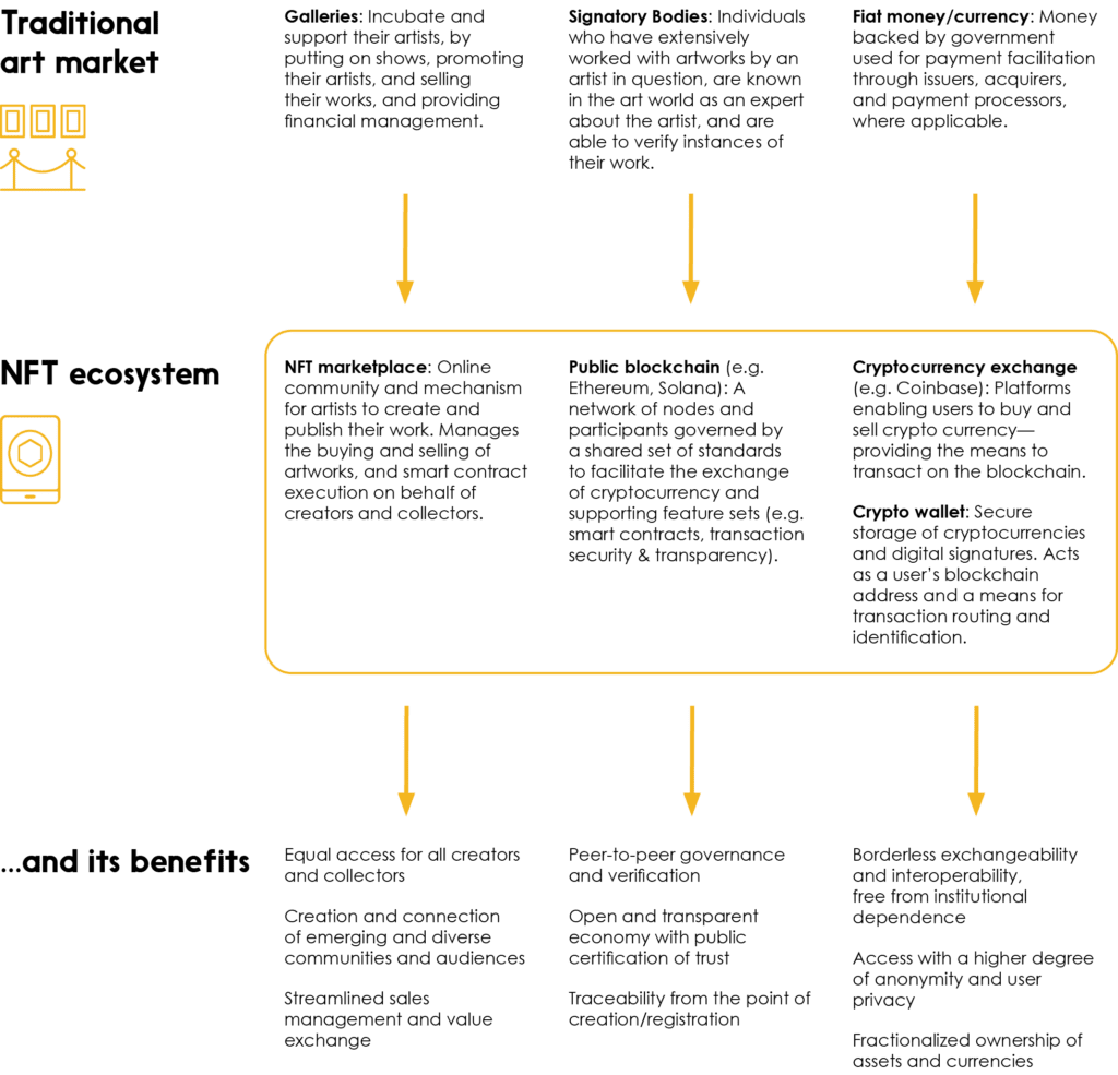 While the traditional art industry is founded on privileges of access and scale that are afforded to a select few, the emerging NFT ecosystem disrupts this, overcoming challenges of provenance, access, promotion, and authenticity for its community members.