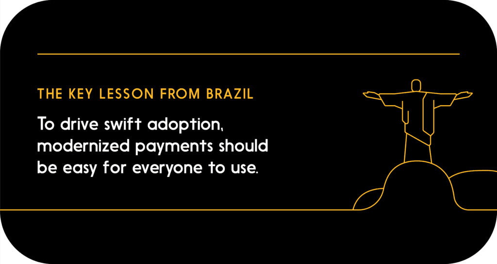 What did the Brazilian central bank do right? Among other things, it made inclusivity (that is, increasing financial inclusion) a key driving principle guiding Pix. The initiative was successful in part because of a user experience that observers said was positive from Day One.