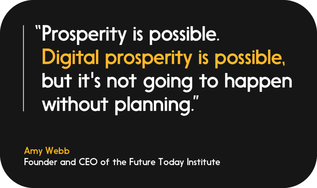 (And before we go on, here’s a little more about Amy: She’s the founder and CEO of the Future Today Institute [FTI], where she and her team have developed a powerful data-driven foresight methodology to try to make sense of our future — including our digital future, and what we need to do to navigate emerging technologies.)