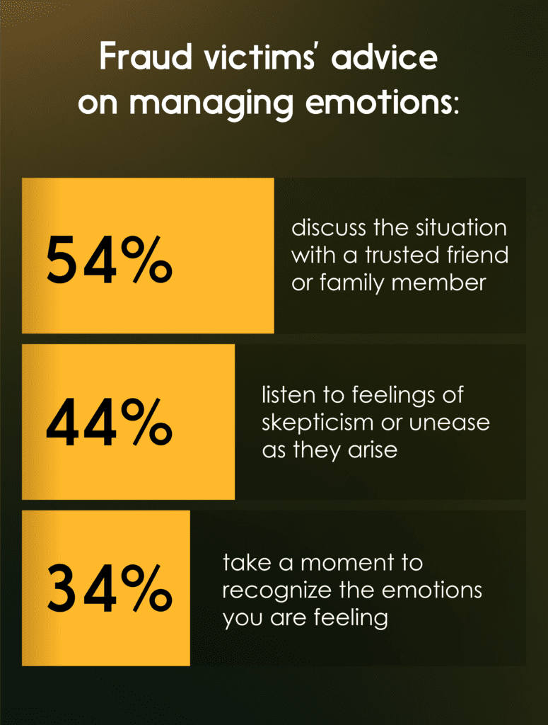 More than half (54 per cent) of fraud victims surveyed agree that knowing what they know now, they would focus on taking charge of their emotions if confronted by a fraud attempt in the future.