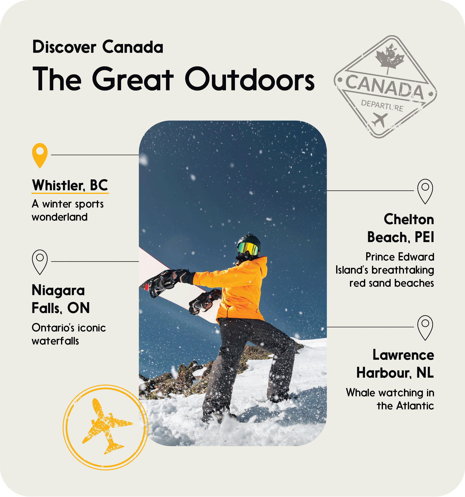 Canada’s size and diversity makes it a place where travellers can explore all sorts of activities. The government of Canada provides information on a wide range of attractions, events, and experiences, including museums, national parks, historic sites, and celebrations.