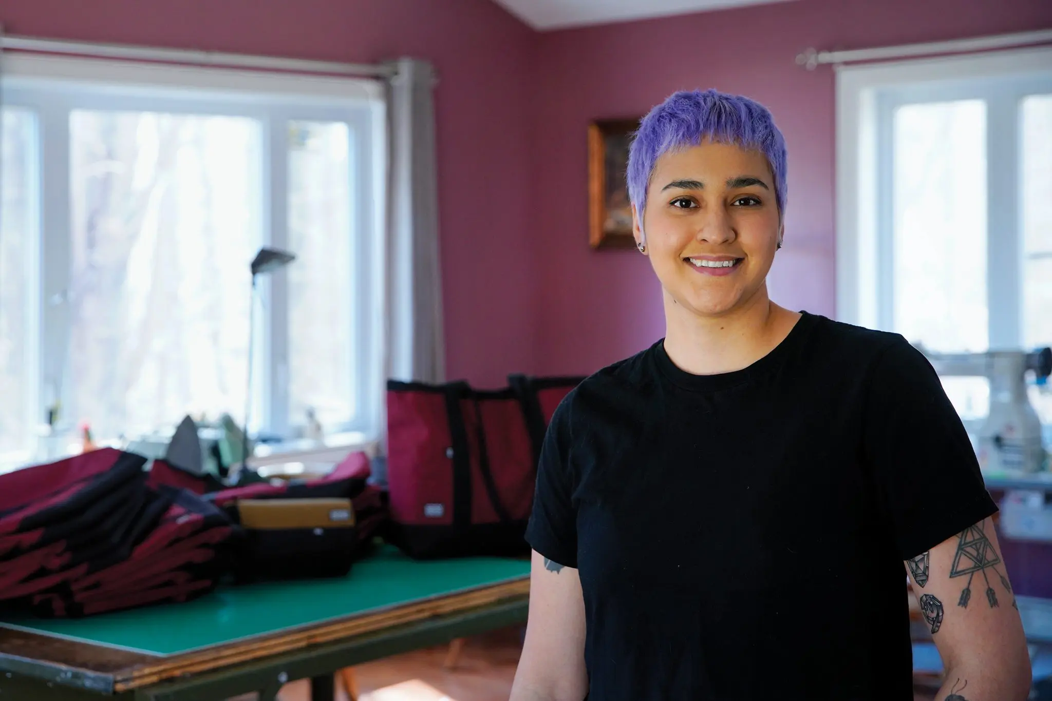 Set up in Kahnawà:ke, near Montreal, KEL Tech Gear offers durable technical bags, including chalk bags for climbers as well as bike bags. From the design and marketing of the products to sewing, packaging and shipping, Kelsey does everything herself in her studio at home. Running a small business by herself is a big challenge for the recent graduate, but she’s loving every moment of it.