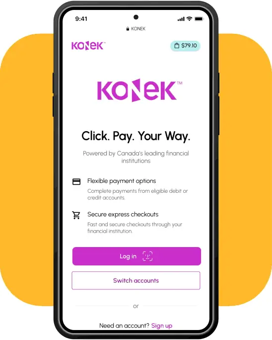 Empower your customers with more ways to pay with Interac Direct through the KONEK™ payment solution. Supported by Canada’s top financial institutions and powered by Interac Corp., Interac Direct through KONEK gives your customers the flexibility and choice to pay with their chequing, savings or line of credit accounts at checkout. KONEK offers transactions that are safe, easy, and flexible.