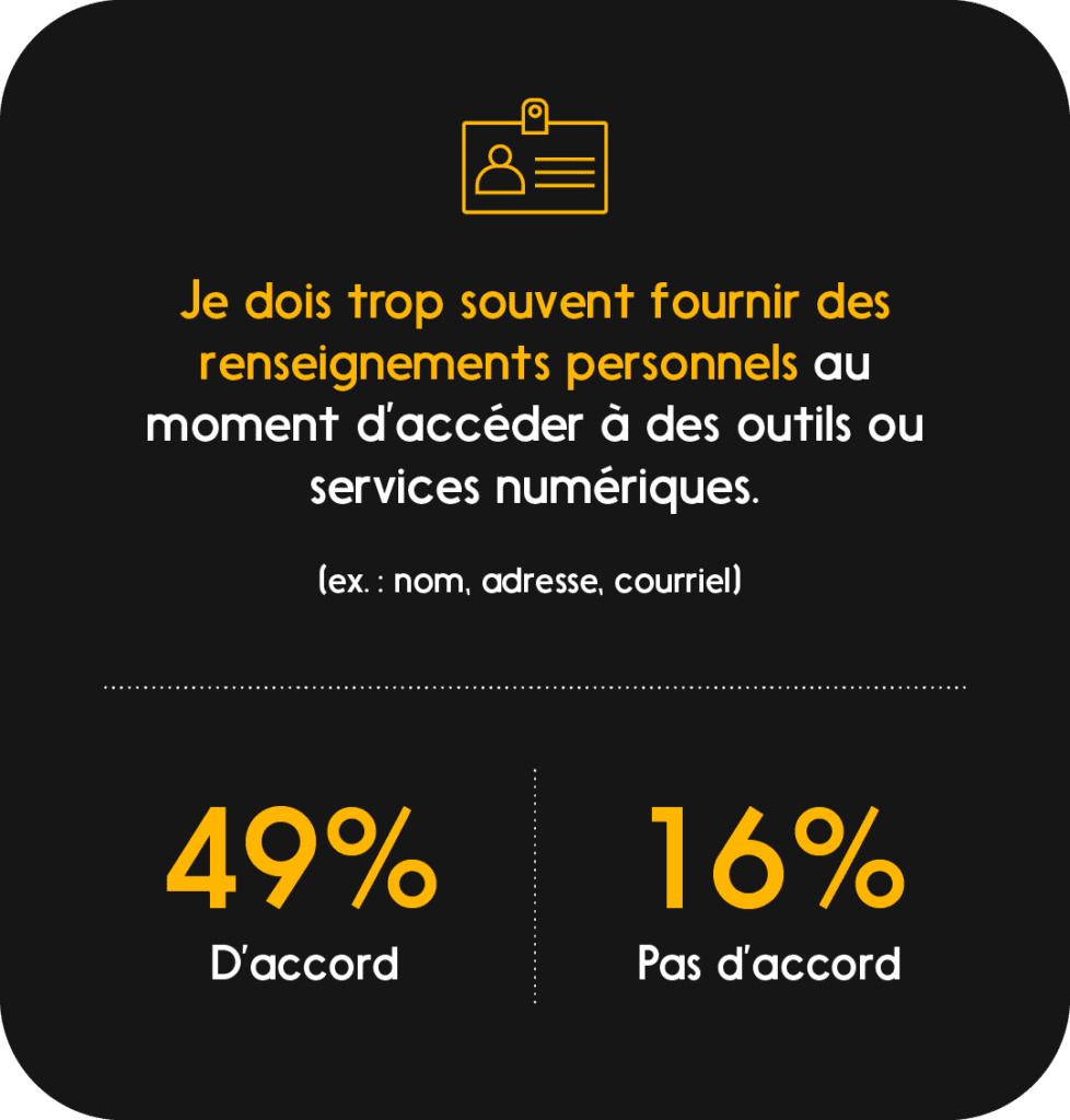 Q : Presque la moitié des répondants au sondage affirment qu’ils sont trop souvent appelés à fournir des renseignements personnels, tels que leur nom, leur adresse et leur courriel, au moment d’accéder à des outils et services numériques. Y a-t-il une tension inhérente entre le besoin de sécurité et l’attente voulant que les expériences numériques soient fluides et rapides?