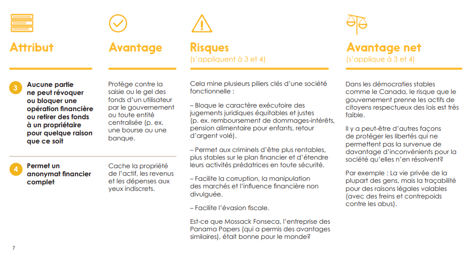 Cependant, il y a des avantages proposés qui sont moins certains et qui peuvent en fait créer plus de risques que d’avantages. Dans les prochaines pages, nous explorerons les avantages nets de ces attributs.
