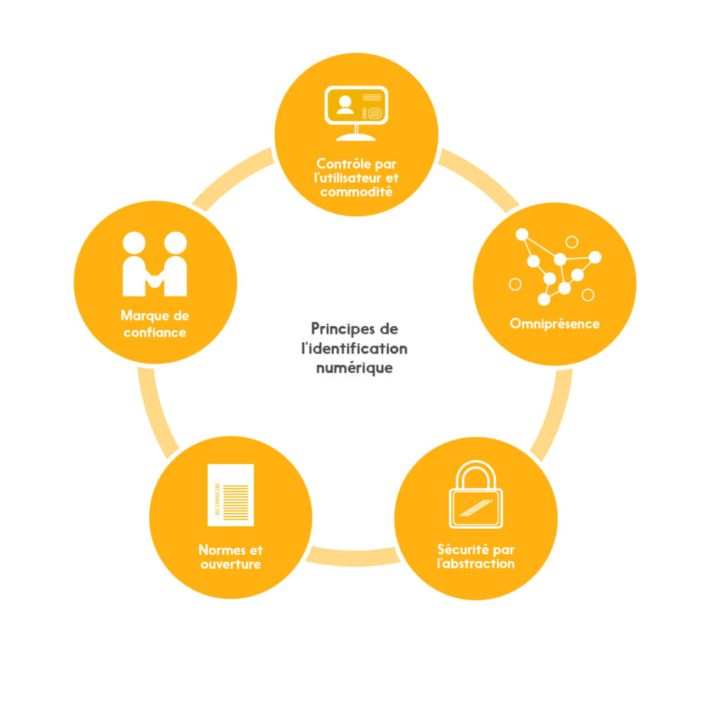 Il est facile de discuter de l’identification numérique de manière théorique, mais il est beaucoup plus complexe de concevoir une architecture et de mettre en œuvre un système d’identification numérique complet, sécuritaire et durable. Pour ce faire, il faut suivre un ensemble de principes clairement définis. Selon nous, cinq principes sont essentiels :