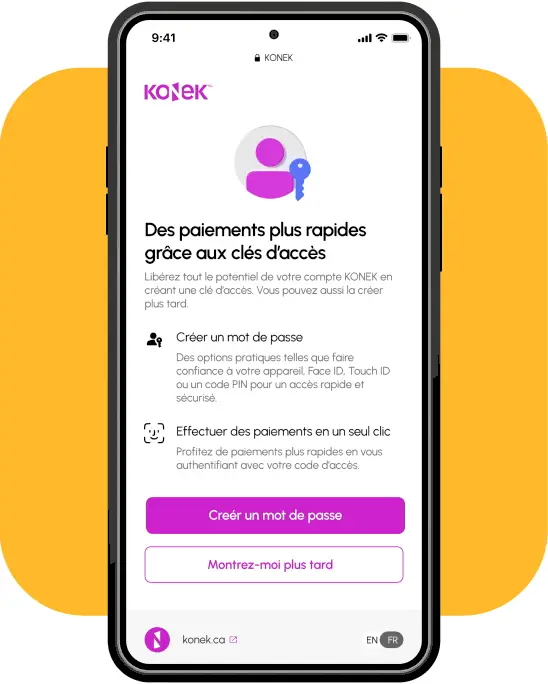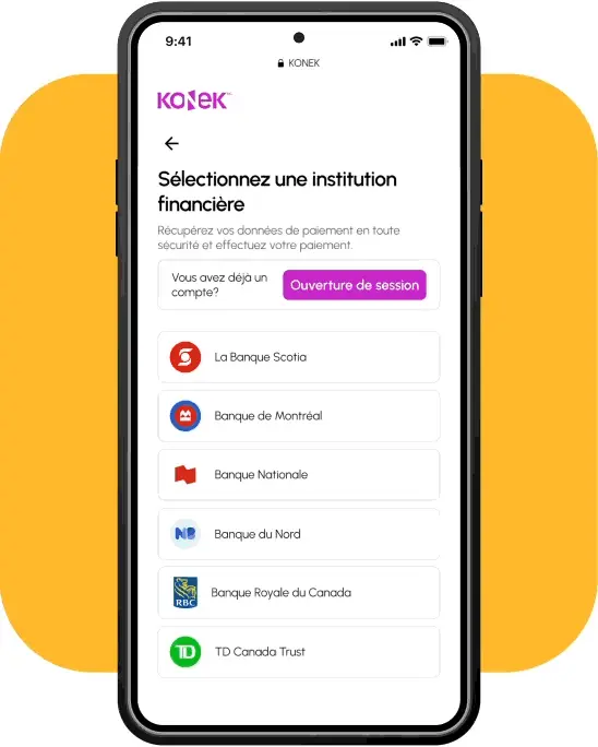 Les paiements par compte permettent aux consommateurs d’effectuer un achat en ligne directement à partir de leur compte admissible sans avoir besoin d’un numéro de carte de leur institution financière participante. Les comptes admissibles sont les comptes-chèques, les comptes d’épargne et les marges de crédit qu’une institution financière participante rend accessible par l’intermédiaire de la passerelle KONEK.